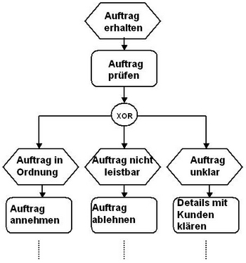 Bei vielen Geschäftsprozessen sind Entscheidungen zu treffen, die dann je nach der Entscheidung in andere Abläufe münden.